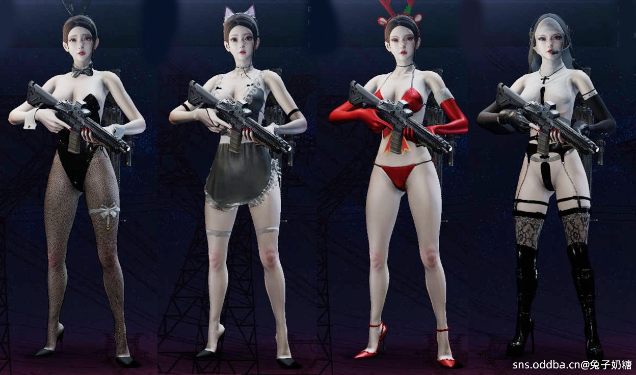 重置了所有角色,在原有4个的角色基础上,增加了4个新的角色,面部也不一样!这也是反馈的内容,头的高度太低,面罩和墨镜都不在位置,为此我调整了角色的高度,手臂的权重也重新细刷了一遍,腿的关节部分也调整到了合适的位置,以匹配游戏内固定的男性角色高度和身材。