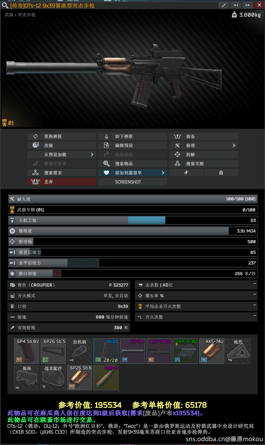 俄罗斯OTs-12短突击步枪,使用9×39弹药。