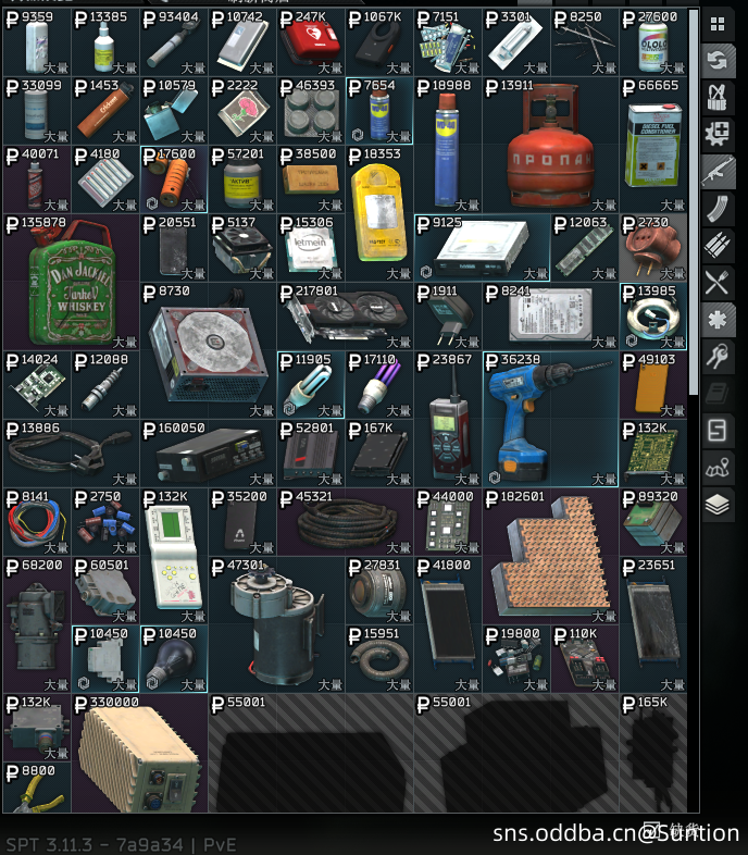 目前模组商人不支持在跳蚤售卖, 大部分物资得自己在物资对应分类里自己找