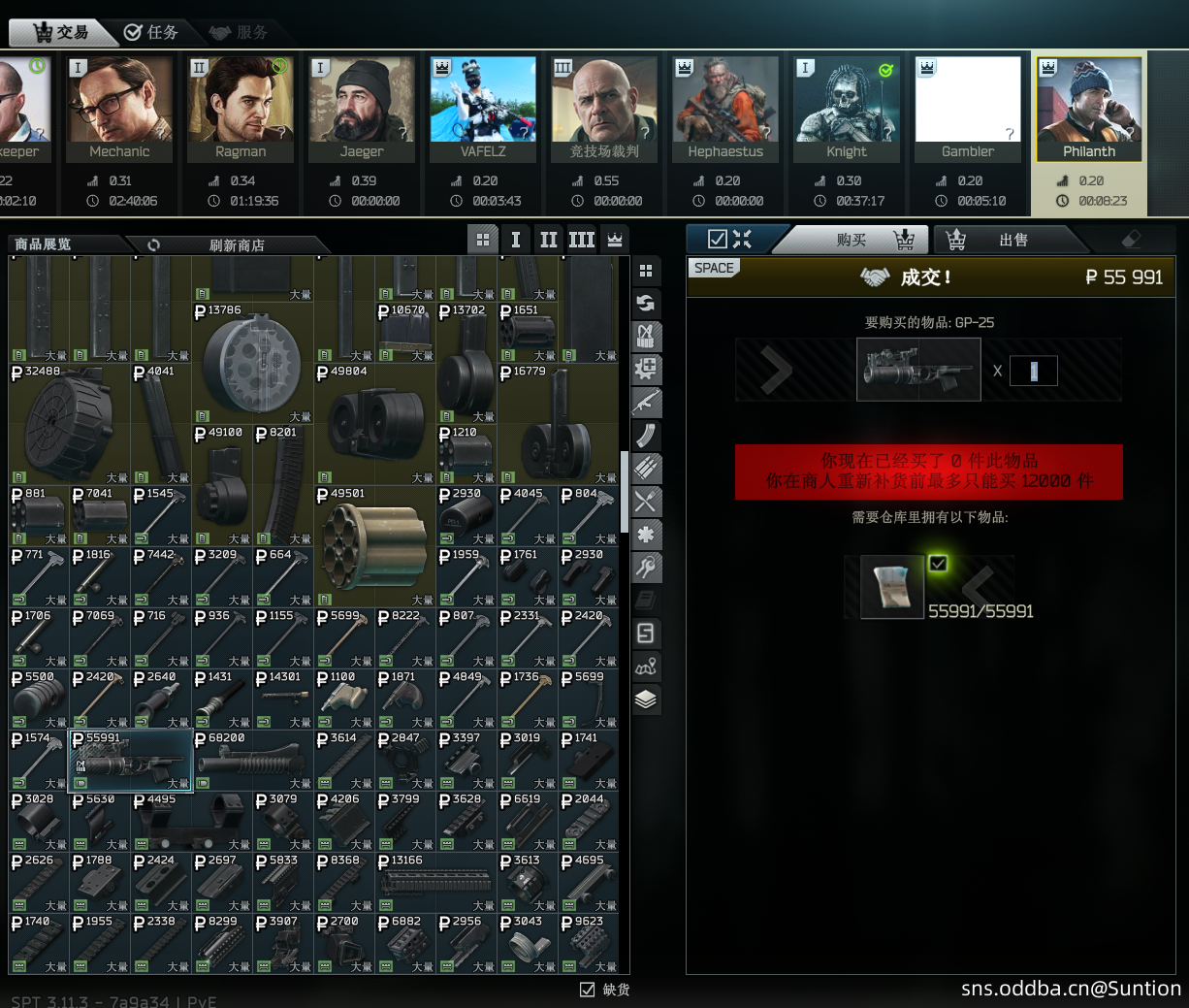 还有一个问题, 由于目前模组是纯操作数据库添加, 并没有实际把商人相关文件移入"游戏根目录\SPT_Data\Server\database\traders"文件夹下, 会报错, 不影响购物