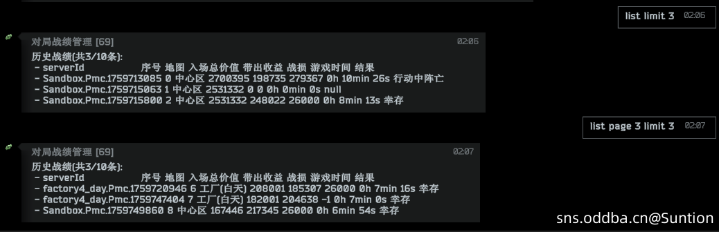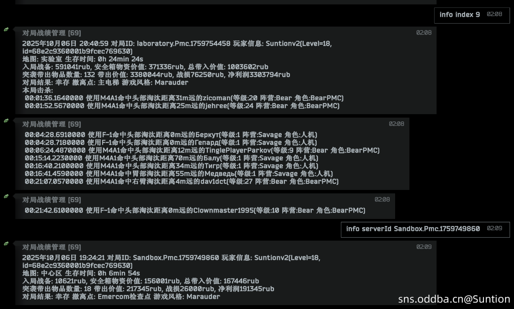 游戏根目录\user\mods\suntion-raidrecord\db\raid_record.json 对局记录