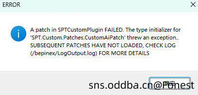 [Error :SPT.Custom] A PATCH IN SPTCustomPlugin FAILED. SUBSEQUENT PATCHES HAVE NOT LOADED