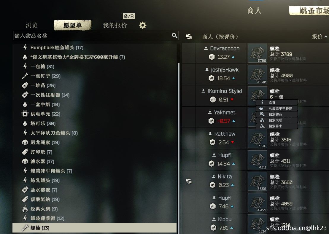 之前看别人在跳蚤市场给物品加入愿望单在战局内容器搜索到会有特殊高亮,不知道为什么我把物品加入愿望单在战局内还是和平常一样没有特殊显示(如图,我用螺栓示例,进入战局前已经加入了愿望单,但在局内搜到没有高亮显示)