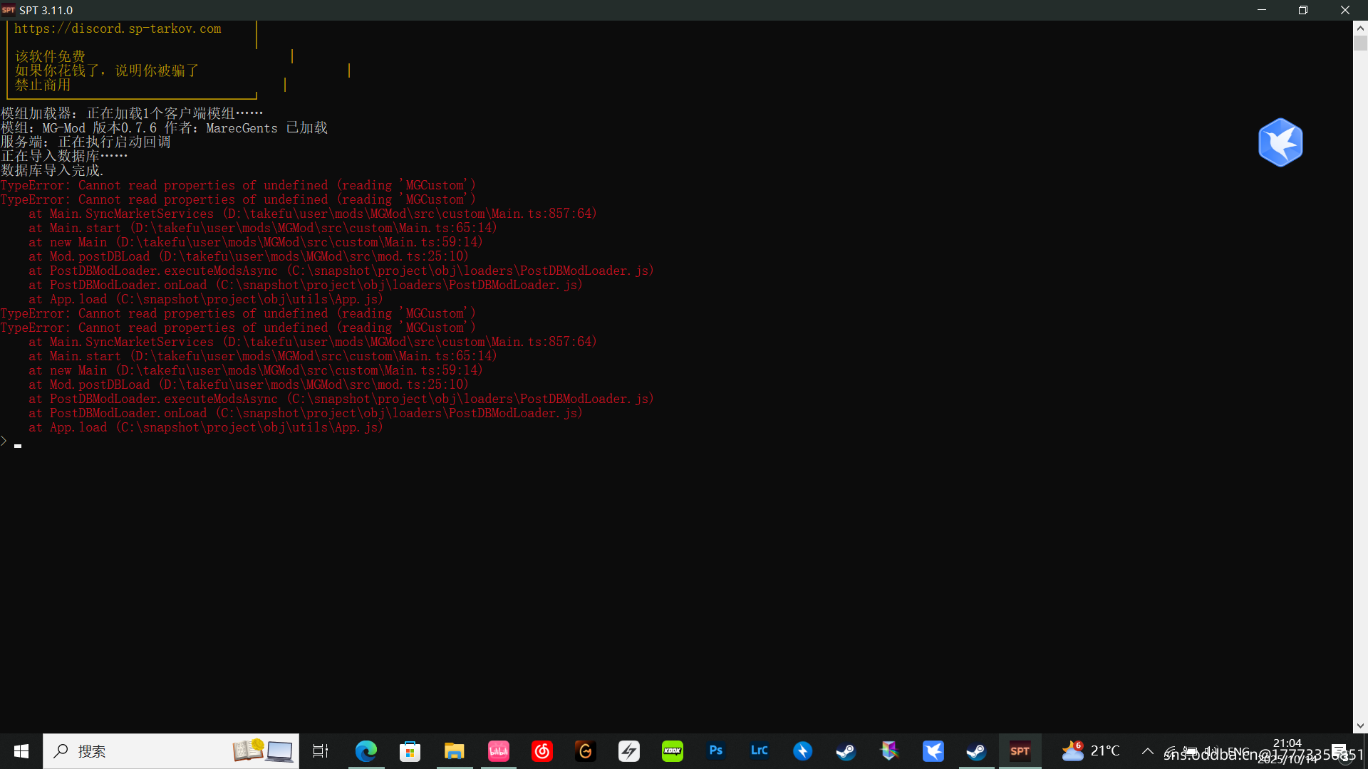 各位大佬,我3.11.0的spt按教程加了MGmod后打开服务端就变成这样的红字了,这是咋整啊