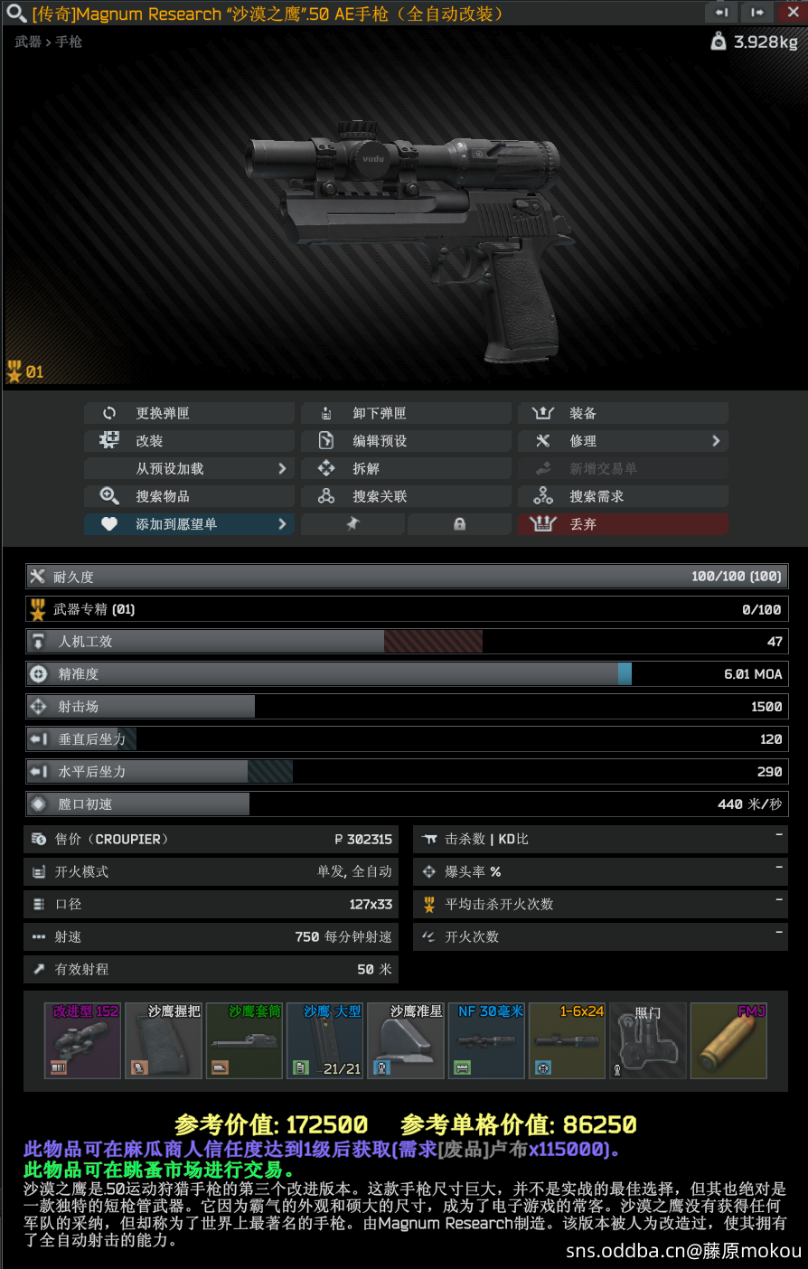 沙漠之鹰手枪的全自动版本,经过特殊改造使其后坐力变得可控