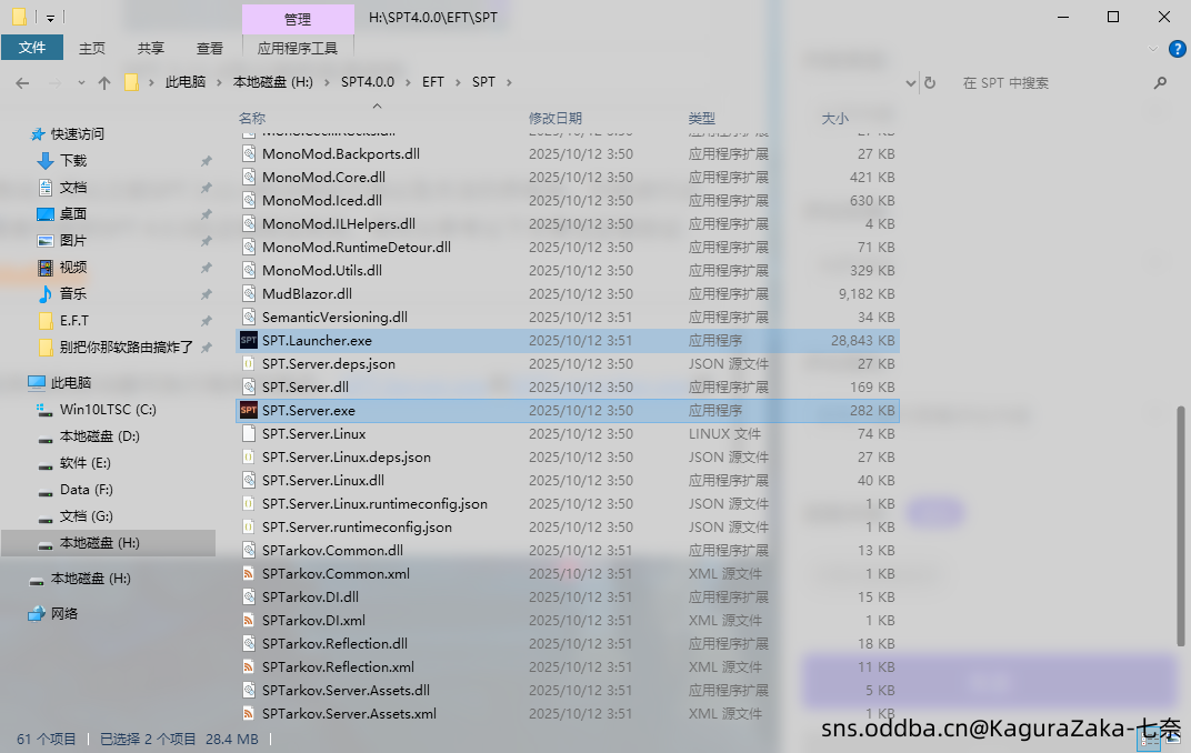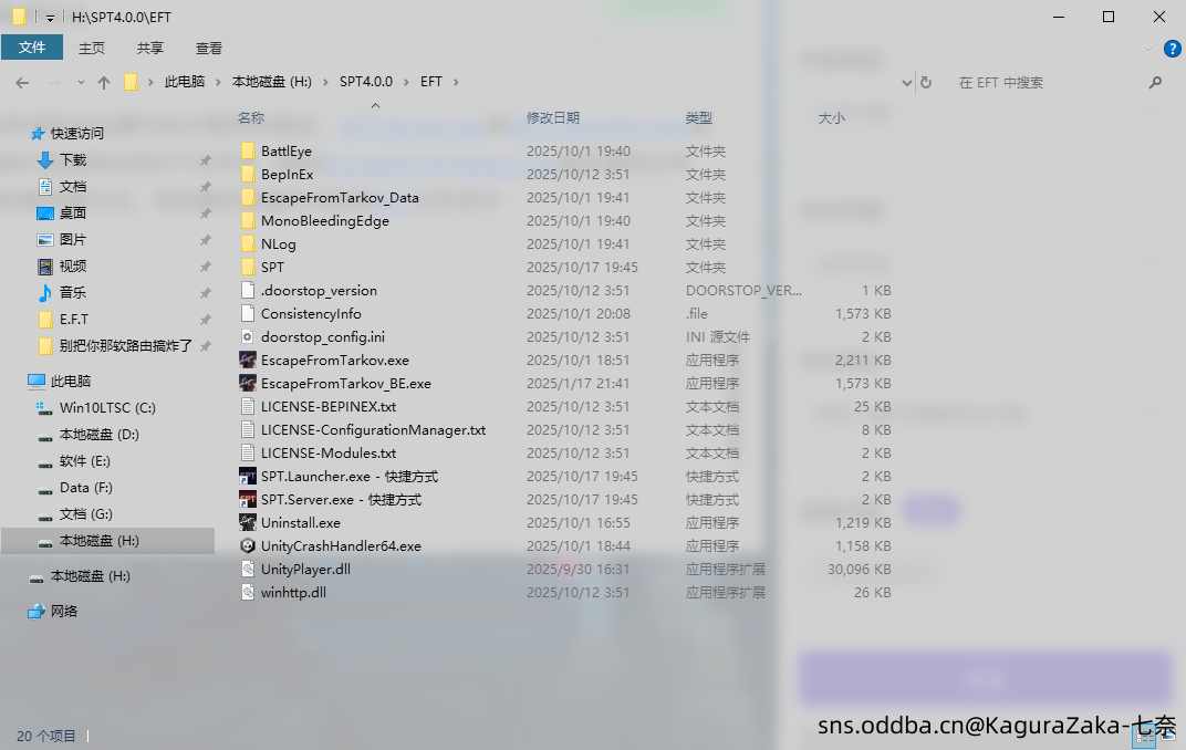 ·上文提到过,新版SPT(SPT 4.0.0)修改了SPT服务端和启动器可执行程序的路径,SPT.Server.exe和SPT.Launcher.exe现在被放进了 ./EFT/SPT/ 文件夹中,不需要且不能将他们直接移动到EFT文件夹(即和EscapeFromTarkov.exe放在相同文件夹中)。当然,为了方便启动,你可以对这两个文件创建快捷方式,将创建的快捷方式放到EFT文件夹中