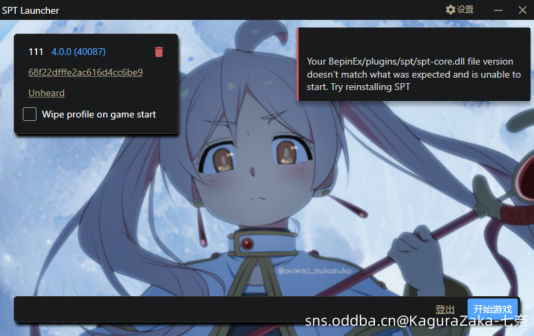 ·Q:开始游戏显示“Your BepinEx/Plugins/spt/spt-core.dll file version doesn't match what was expected and is unable to start. Try reinstall SPT”