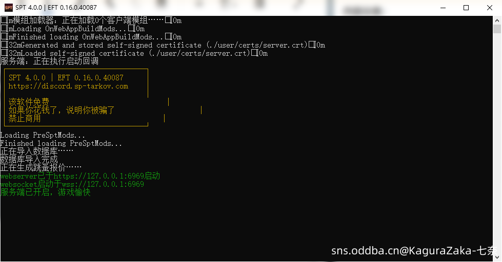 ·接下来,先打开SPT.Server.exe并等待服务端加载完成,加载完成如下图所示: