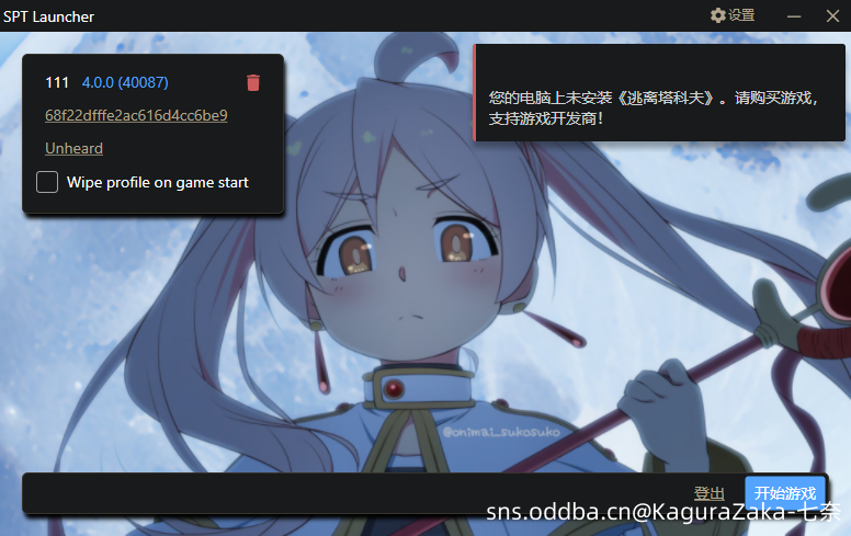 ·A:此提示表示游戏未通过正版验证,请根据这篇文章重新进行正版验证:[SPT 3.11.4]过正版验证补丁及教程 – By KagurazakaNana