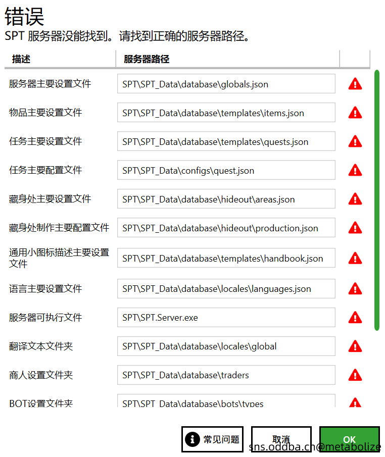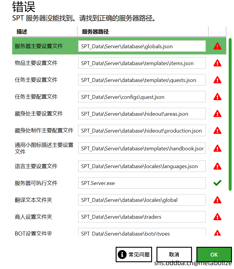 新版本多了一个SPT文件夹,里面的SPT_Data没有Server文件夹,所以只需要把每个不对的路径中间的Server\删掉即可