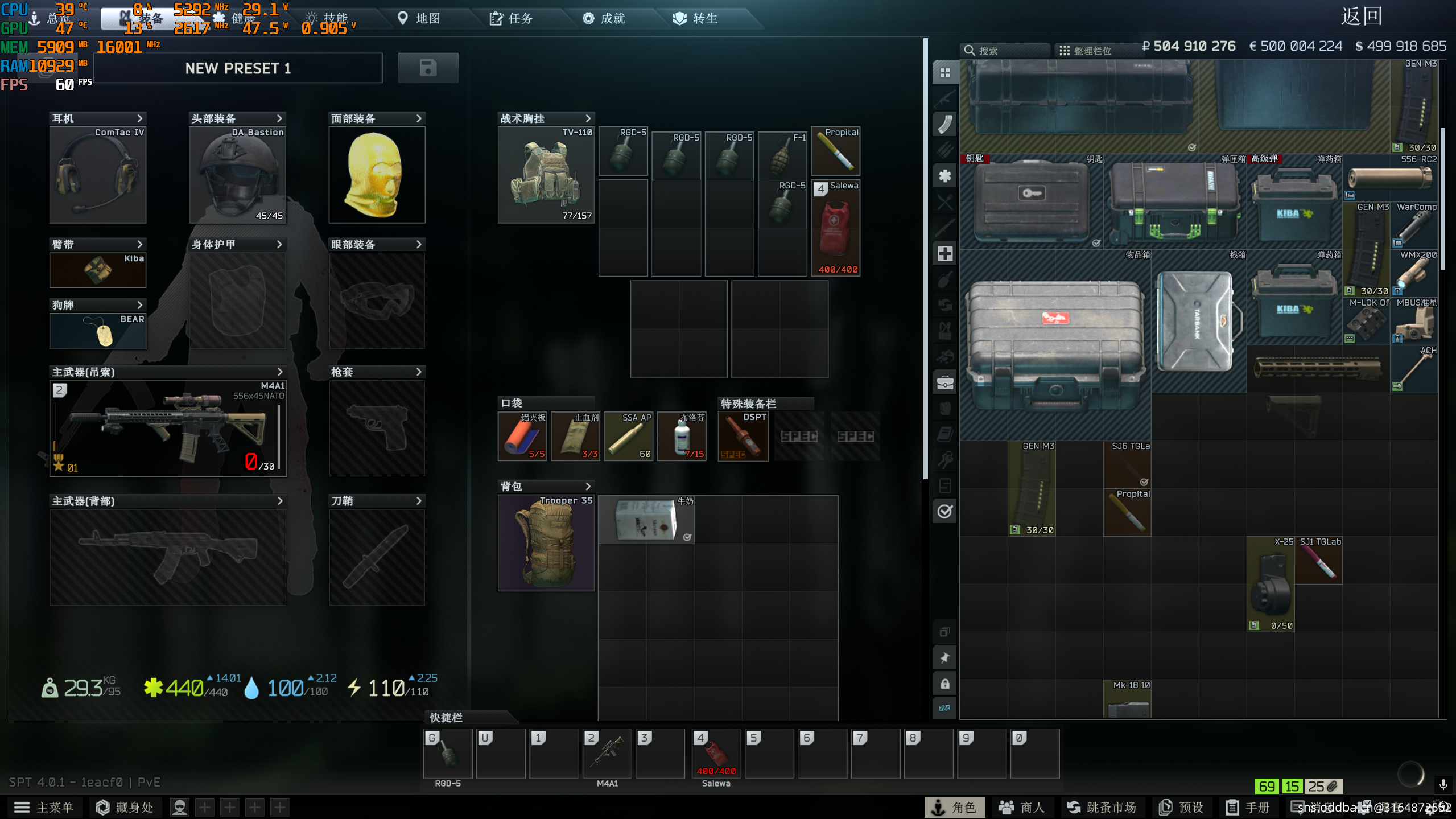 SPT4.0.1,之前玩3.11.4的时候也出现过,具体表现是局内给.338大狙装子弹的时候物品闪烁卡死,什么都干不了,4.0.1是直接在仓库卖跳骚物品闪烁卡死
