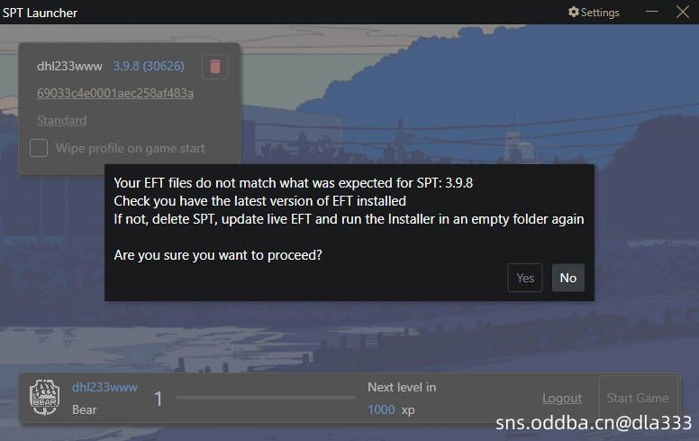 检查你的客户端、服务端是否为以下客户端版本:SPT-AKI 3.9.0 – 3.9.8 Release-30626 0.14.9.1.30626服务端版本:SPT-3.9.8-30626-a0c79ac根据你这截图里的内容翻译来看,是客户端版本与服务端所需要的版本不匹配导致的,服务端需要3.9.8