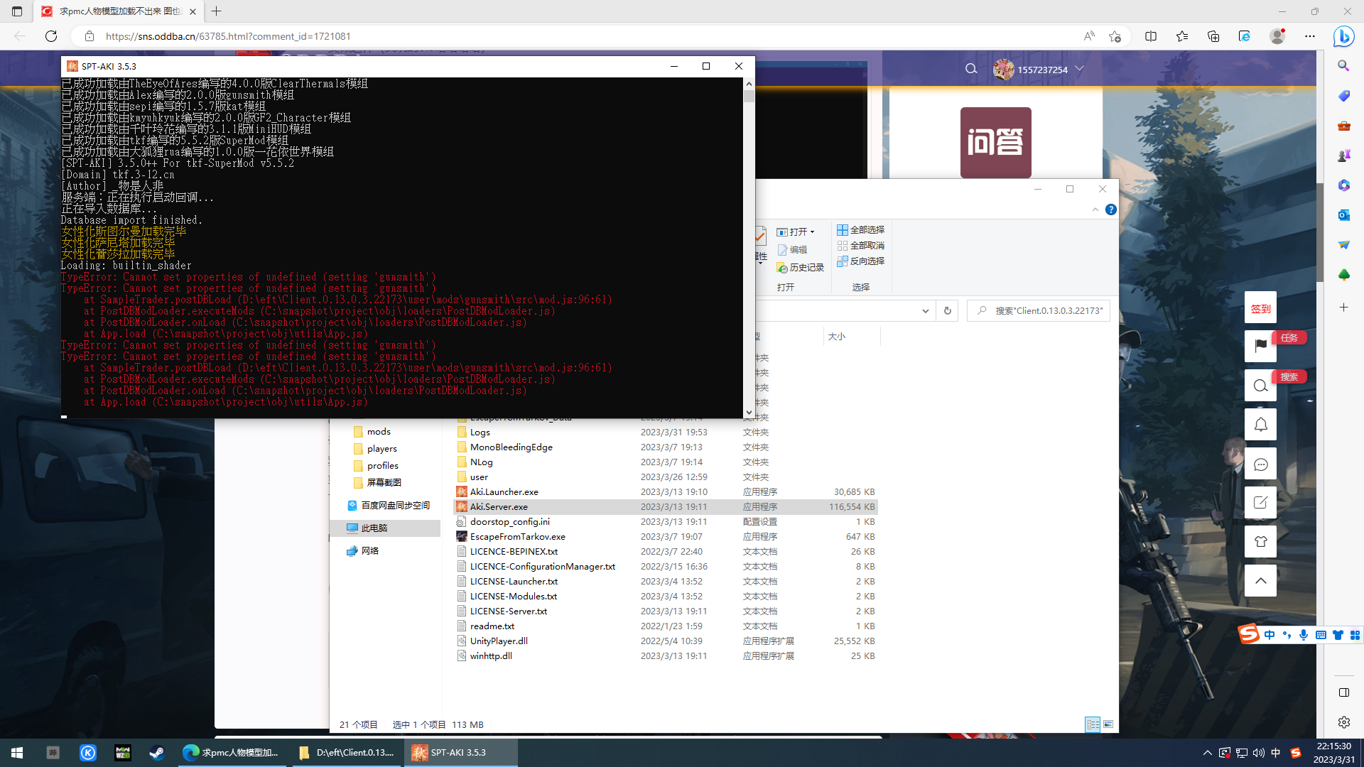 不是这个,你点开Aki.Server.exe,运行的时候不是会一直跳字符吗?如果数据不对的话里面有可能报红字的,alt+ TAB可以切出来看看